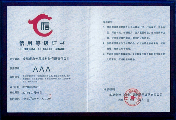 | 凌海市農(nóng)光種業(yè)科技有限責(zé)任公司是由遼寧省種子管理局和凌海市人民政府批準(zhǔn),集科研、生產(chǎn)、試驗(yàn)示范、經(jīng)營(yíng)為一體的種子企業(yè)。 公司擁有種子繁育基地3萬(wàn)畝,年產(chǎn)種子1200萬(wàn)公斤左右。自成立以來(lái)在農(nóng)業(yè)部及遼寧省歷次花期檢驗(yàn)中,所生產(chǎn)的種子質(zhì)量合格,擁有良好的儲(chǔ)備、晾曬和機(jī)械加工設(shè)備,為了提高種子質(zhì)量,2015年新購(gòu)置種子脫粒機(jī)、清選機(jī)、烘干機(jī)以及電腦包裝機(jī)等整套加工設(shè)備,擁有經(jīng)省技術(shù)監(jiān)督局認(rèn)證的“標(biāo)準(zhǔn)化檢驗(yàn)室”,投資20萬(wàn)元購(gòu)買(mǎi)人工氣候室、土壤測(cè)試儀、低溫低濕冷藏箱等各種檢驗(yàn)設(shè)備。公司重視種子科研工作,現(xiàn)有科研育種實(shí)驗(yàn)基地100畝,科研上以自主研發(fā)為主,同時(shí)與多家科研單位合作育種,每年繁、育、測(cè)交材料2000多份,現(xiàn)以推出五個(gè)組合參加錦州區(qū)域試種,其中“農(nóng)光3號(hào)、農(nóng)光4號(hào)”在錦州地區(qū)試驗(yàn)中產(chǎn)量居首位。2006年公司買(mǎi)斷的連玉16玉米品種已通過(guò)5個(gè)省市的審認(rèn)定,具有適應(yīng)性廣、抗逆性強(qiáng)、產(chǎn)量高的特點(diǎn),曾榮獲大連科技進(jìn)步一等獎(jiǎng),深受廣大農(nóng)戶(hù)的歡迎。2008年公司新選育的農(nóng)光4000玉米品種在市種子管理站新品種大區(qū)試驗(yàn)項(xiàng)目中。2012年公司買(mǎi)斷錦玉118品種權(quán),新品種的推廣與應(yīng)用為公司的發(fā)展提供了充足的動(dòng)力...... |